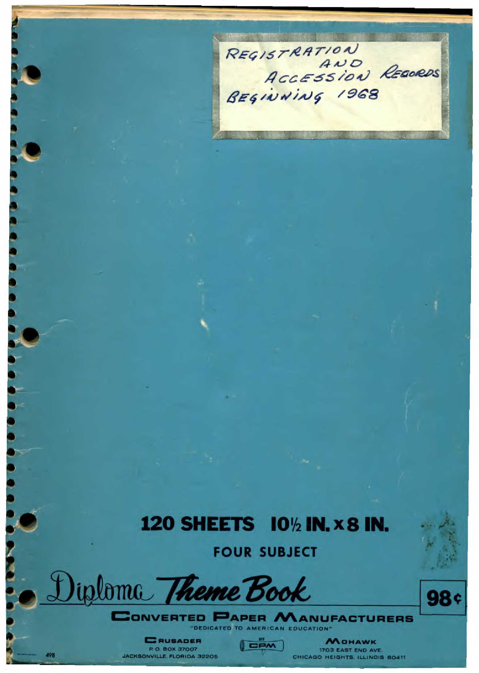 Object Desc Bin of assention and inventory records fron 1968. Not scanned at this time.