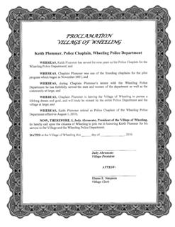 Deputy Chief Benson said a few words about Chief Stone’s time with the Wheeling Police Department and thanked him for his years of service to the Village of Wheeling. |