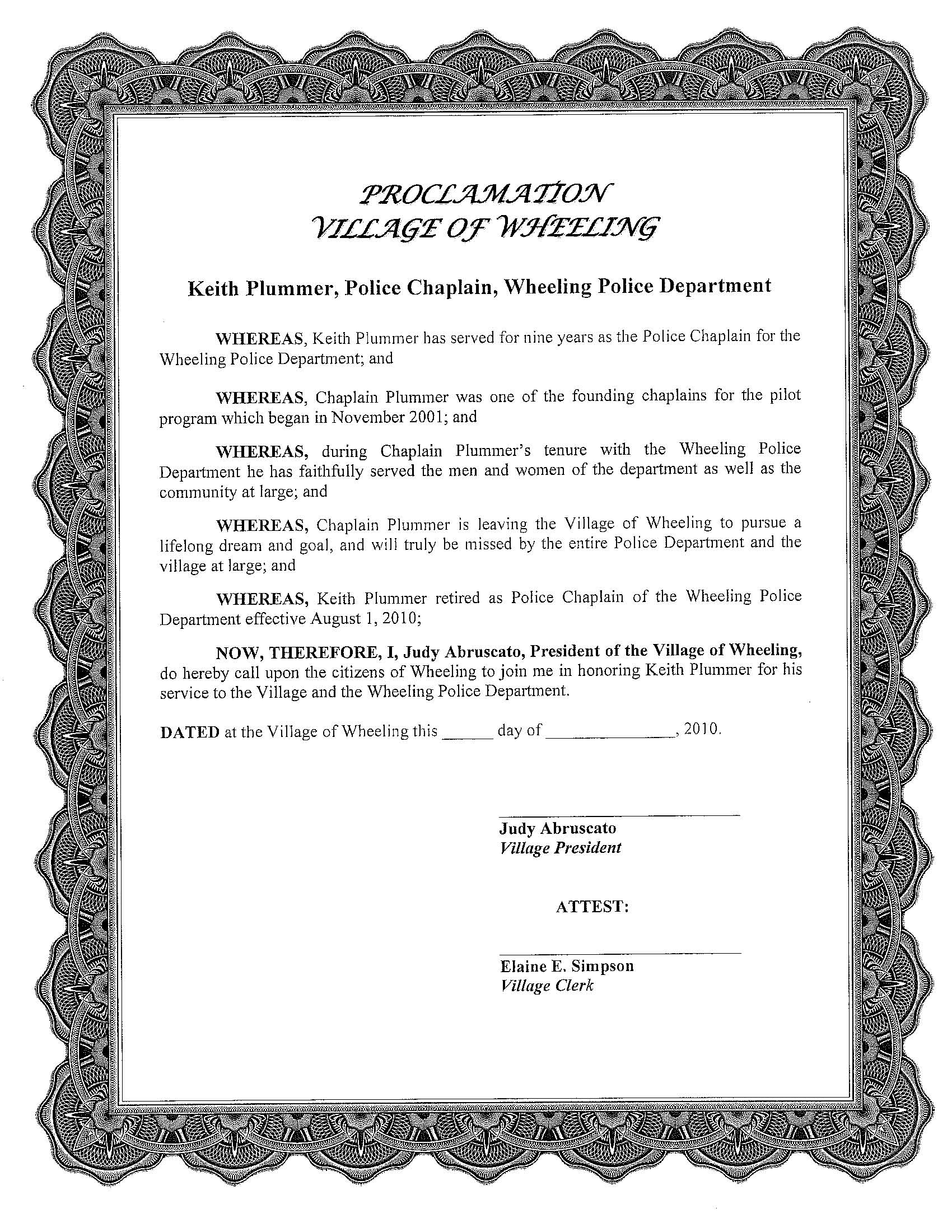 WHEREAS, Terry Steilen has volunteered as a Wheeling Plan Commissioner to assist the Village Board with following the Comprehensive Plan for development and redevelopment.