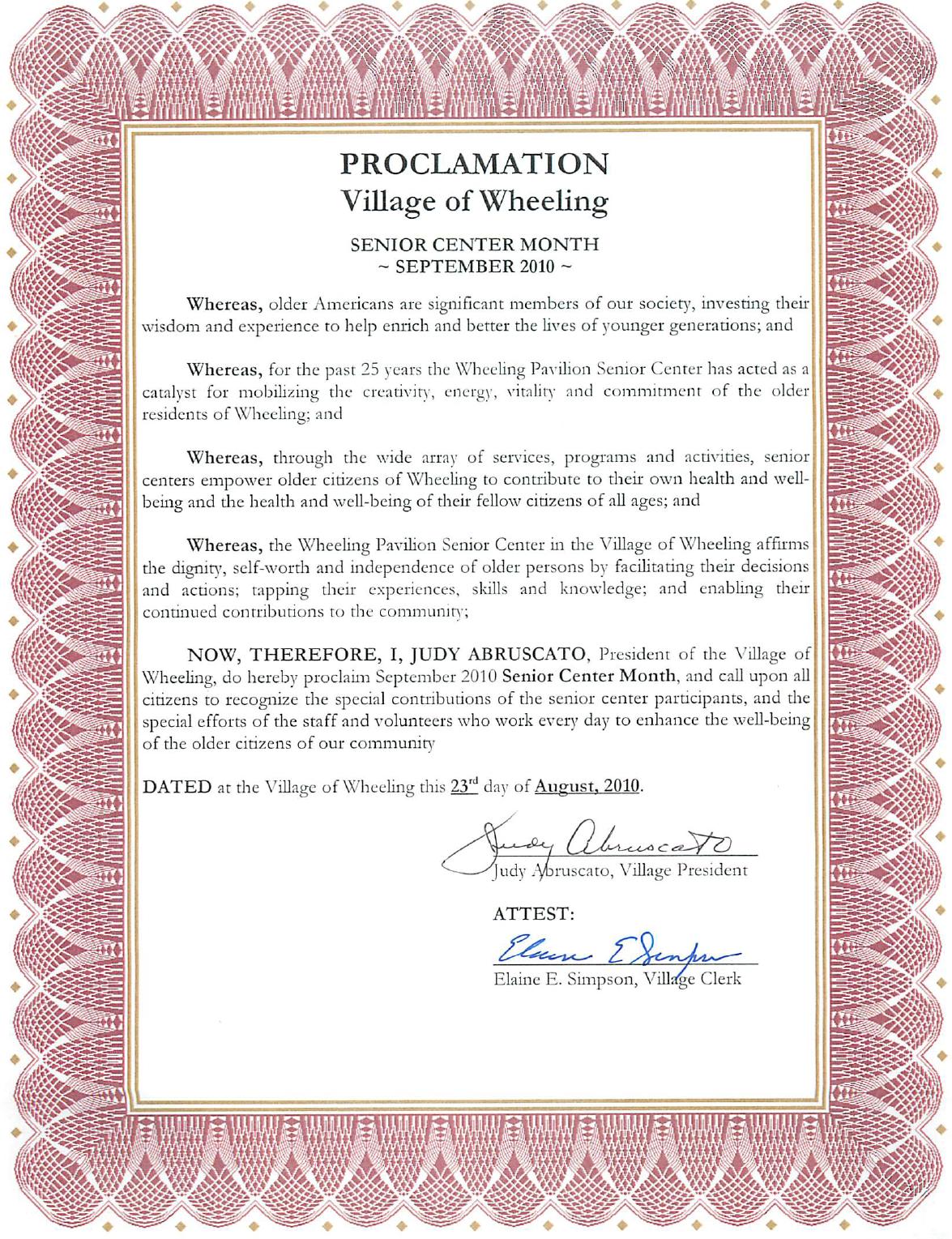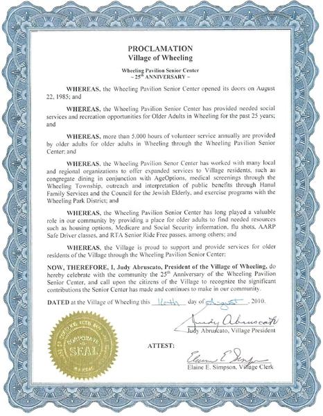 Older Americans are significant members of our society, investing their wisdom and experience to help enrich and better the lives of younger generations.For the past 25 years the Wheeling Pavilion Senior Center has acted as a catalyst for mobilizing the creativity, energy, vitality and commitment of the older residents of Wheeling; |